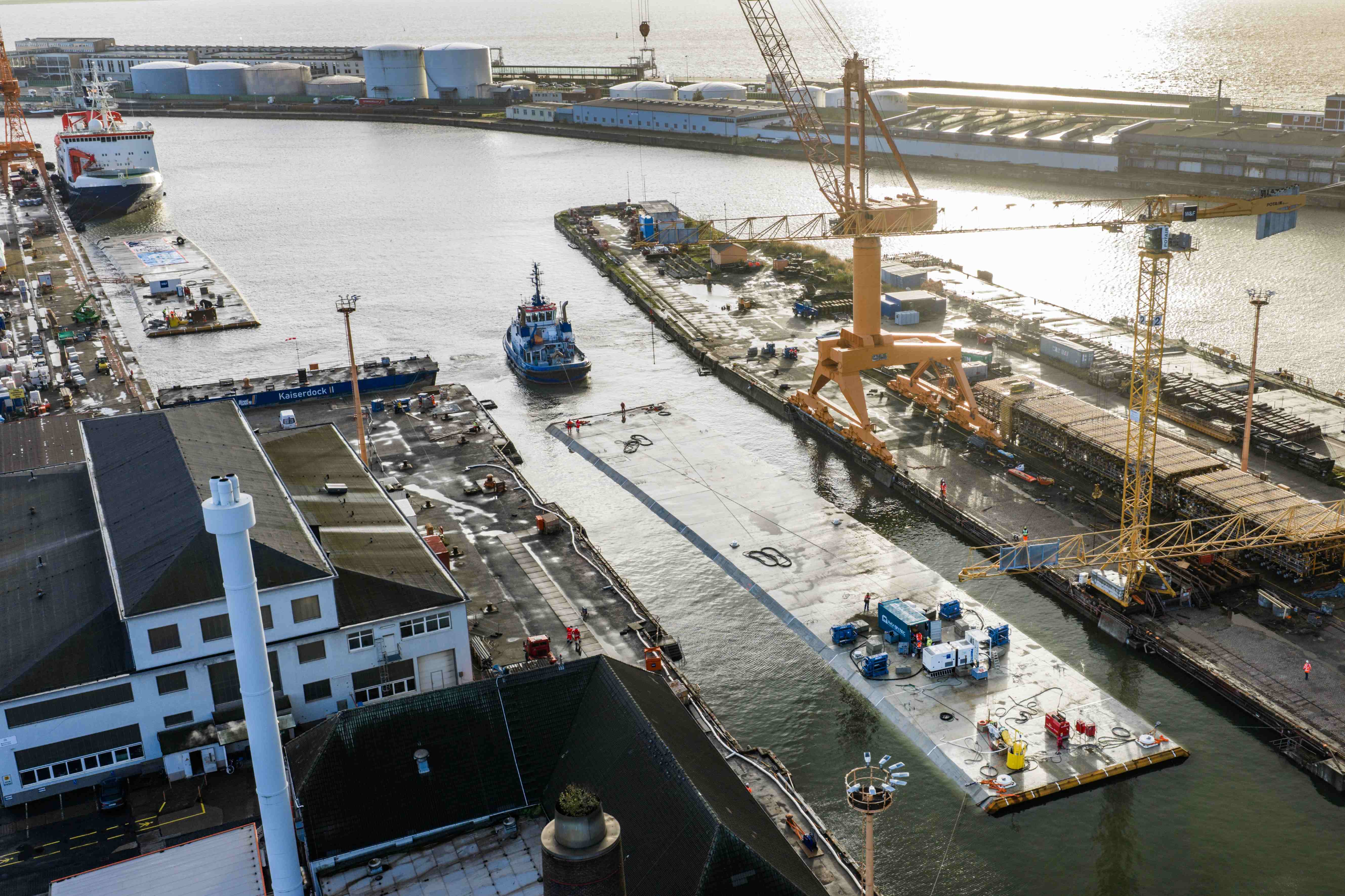 Eerste tunnelelementen Wesertunnel succesvol uitgedokt