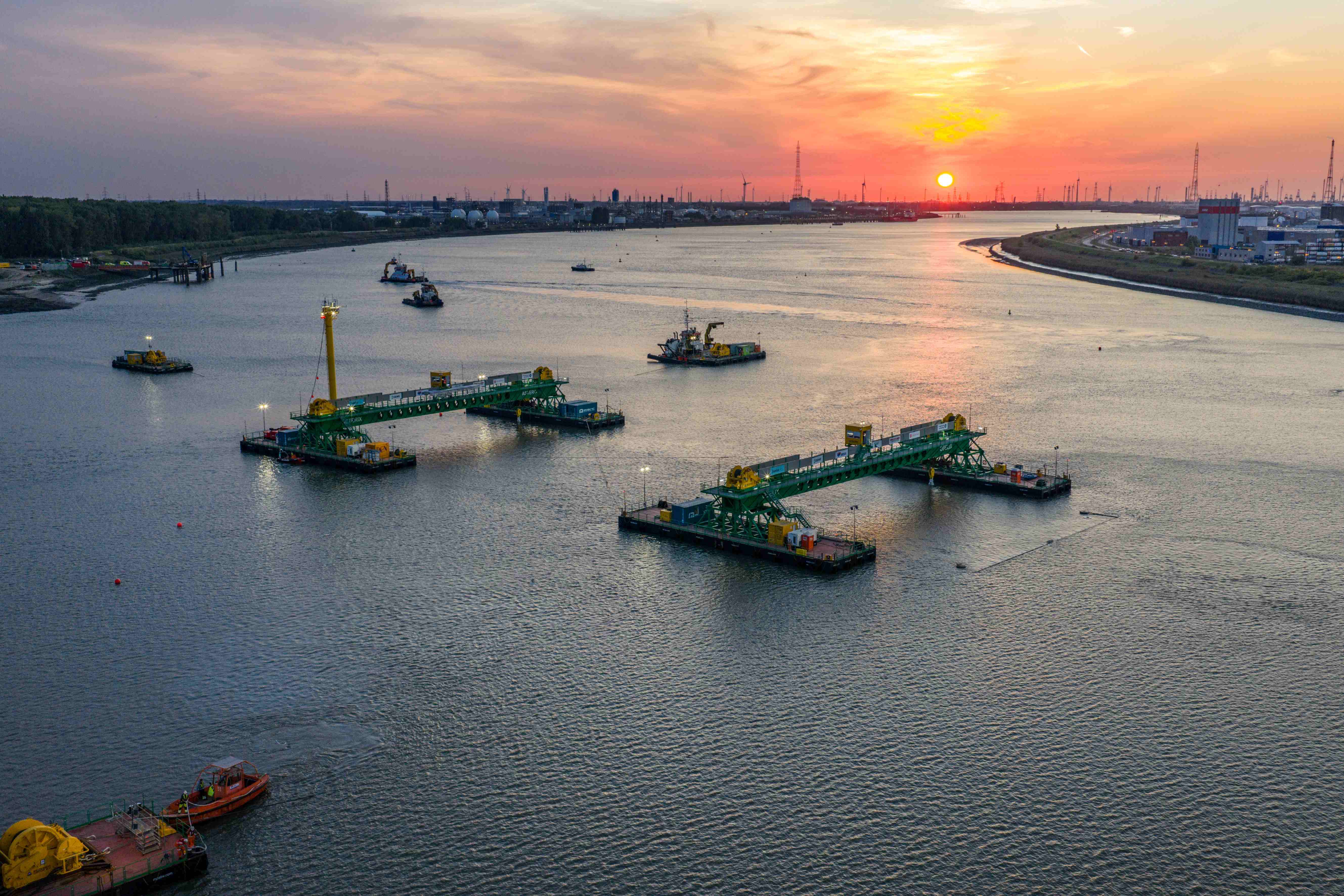 Mijlpaal bereikt: vier tunnelelementen van de Scheldetunnel succesvol afgezonken